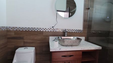 Una alacena independiente desayunador y un medio baño, todo en un ambiente abierto y completamente integrado con la vista del Océano Pácifico. Real Mediterráneo te ofrece espectaculares casas de playa contemporáneas en la exclusiva zona de la costa del Océano Pacífico.