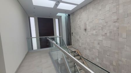 Cuenta con dos cocheras independientes, en el mismo nivel una recámara, recibidor, otro segundo espacio actualmente utilizado como oficina con un pequeño patio de iluminación, baño completo y closet de servicio.