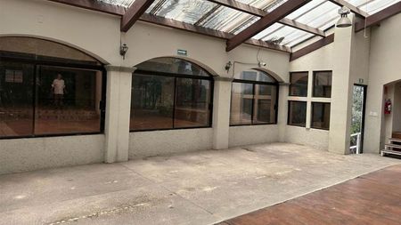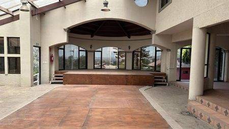 En la planta baja nos encontramos con un salón social equipado con cocina, una alberca y sanitarios. En la planta alta tenemos una recámara con un baño completo y jacuzzi; además la propiedad tiene caballerizas y una oficina.